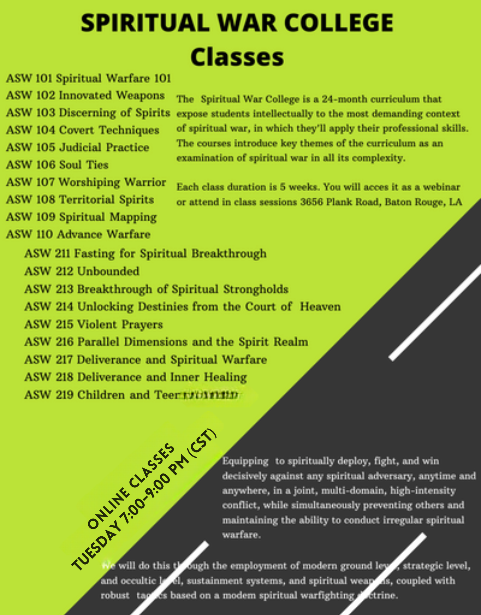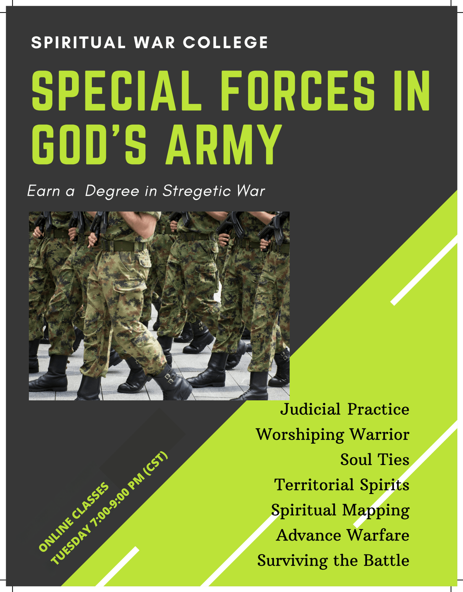 Our task is to equip and spiritually deploy, fight, and win decisively against any spiritual adversary, anytime and anywhere. This college prepares the exceptional “prayer” to engage in high-intensity conflict, while simultaneously preventing attacks of spiritual opponents. The objective is to be able to maintain the ability to conduct innovative spiritual warfare.